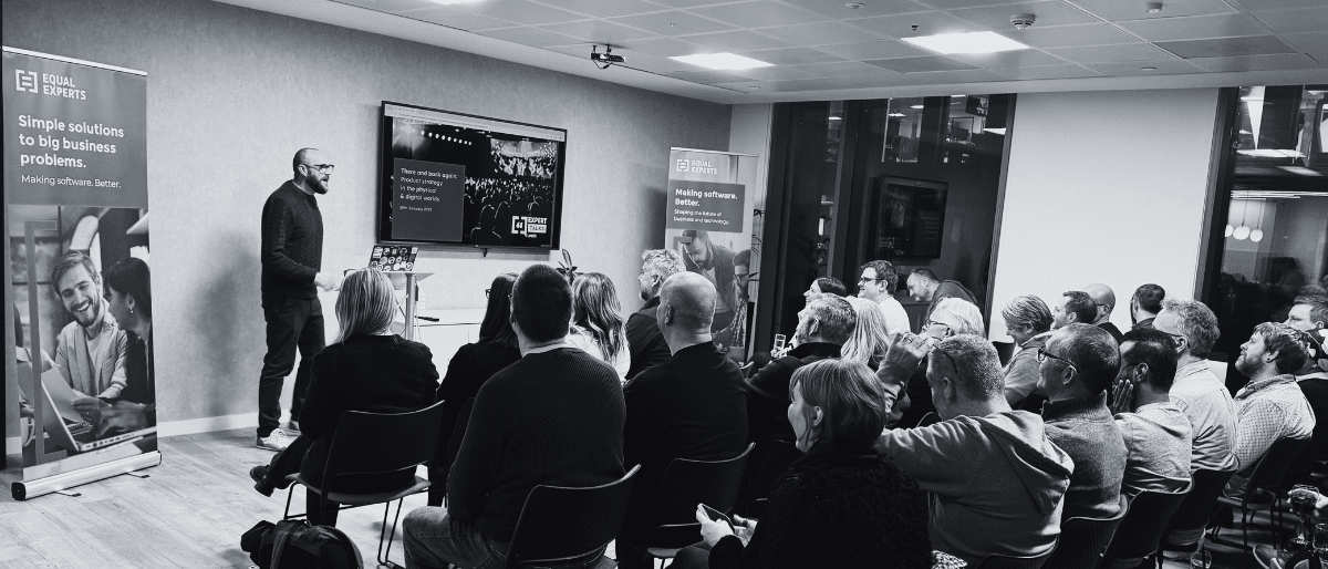 Equal Experts is proud to be part of the tech community in Leeds. That community is lively, challenging, good-humoured and determined to look past hype and get to the bottom of how digital technology interacts with everyday experiences. All of those qualities were to the fore when technologists from across the region gathered for There and Back Again: Product Strategy in the Physical and Digital Worlds. It was our first in-person Expert Talks event in the north of England since the pandemic, and the energy in the room was testament to how much we’ve all missed these occasions.