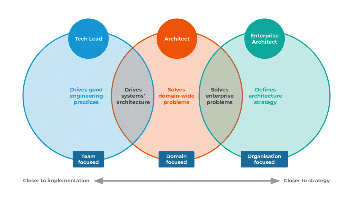 I’ve been working with Stuart Gunter and Dave Sammut – who also co-authored this article with me – to identify the responsibilities typically fulfilled by three roles: tech lead, architect, and enterprise architect.