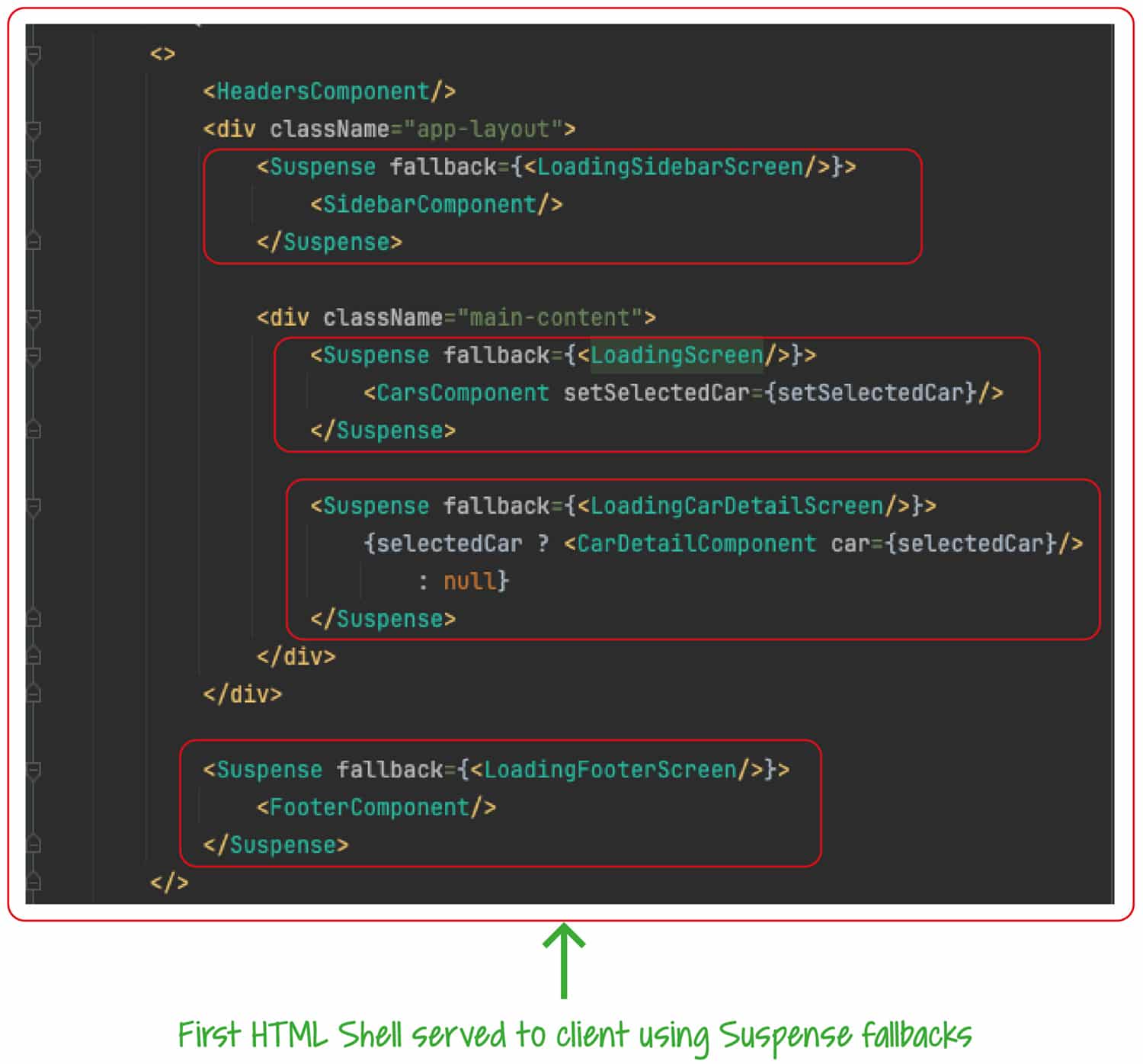 Progressive rendering – the application progressively renders using HTML streaming from the server